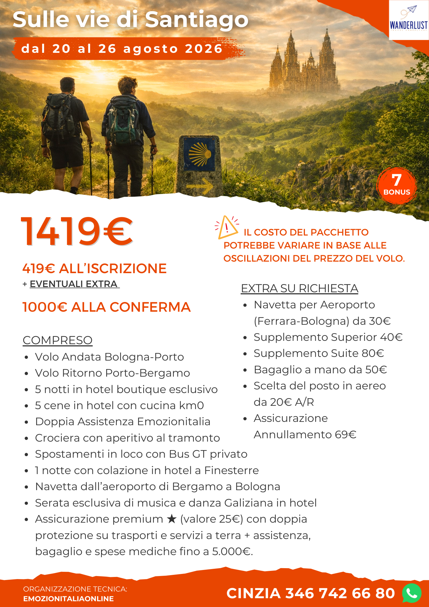 Il Cammino di Santiago non è solo un viaggio: è un’esperienza che lascia il segno. Attraverseremo la Galizia tra boschi, villaggi e sentieri storici, fino ad arrivare alla Cattedrale di Santiago, meta di pellegrini da tutto il mondo. Un percorso fatto di natura, incontri, emozioni e panorami sull’oceano, che culmina a Finisterre, dove la terra incontra l’infinito.